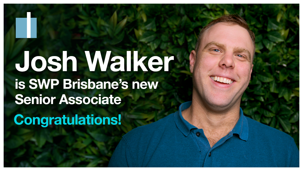 ✨ Exciting news! We’re thrilled to announce Josh Walker’s promotion to Senior Associate at SWP in Brisbane!